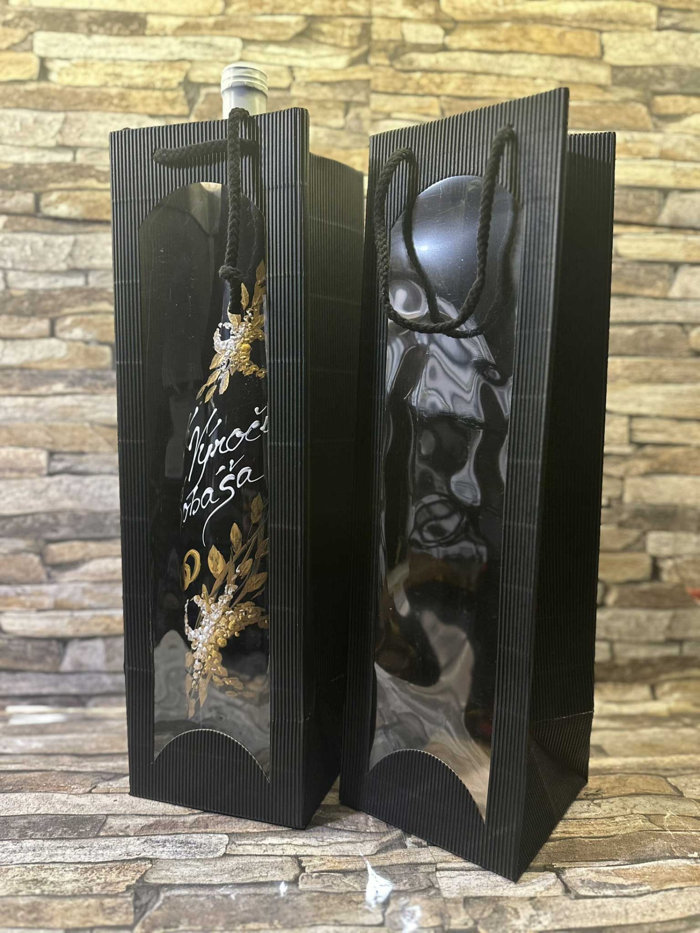 Elegantná darčeková taška na fľašu s objemom 1,5 l.Ideálna na ručne maľované víno ako darček k výročiu, jubileu či svadbe.